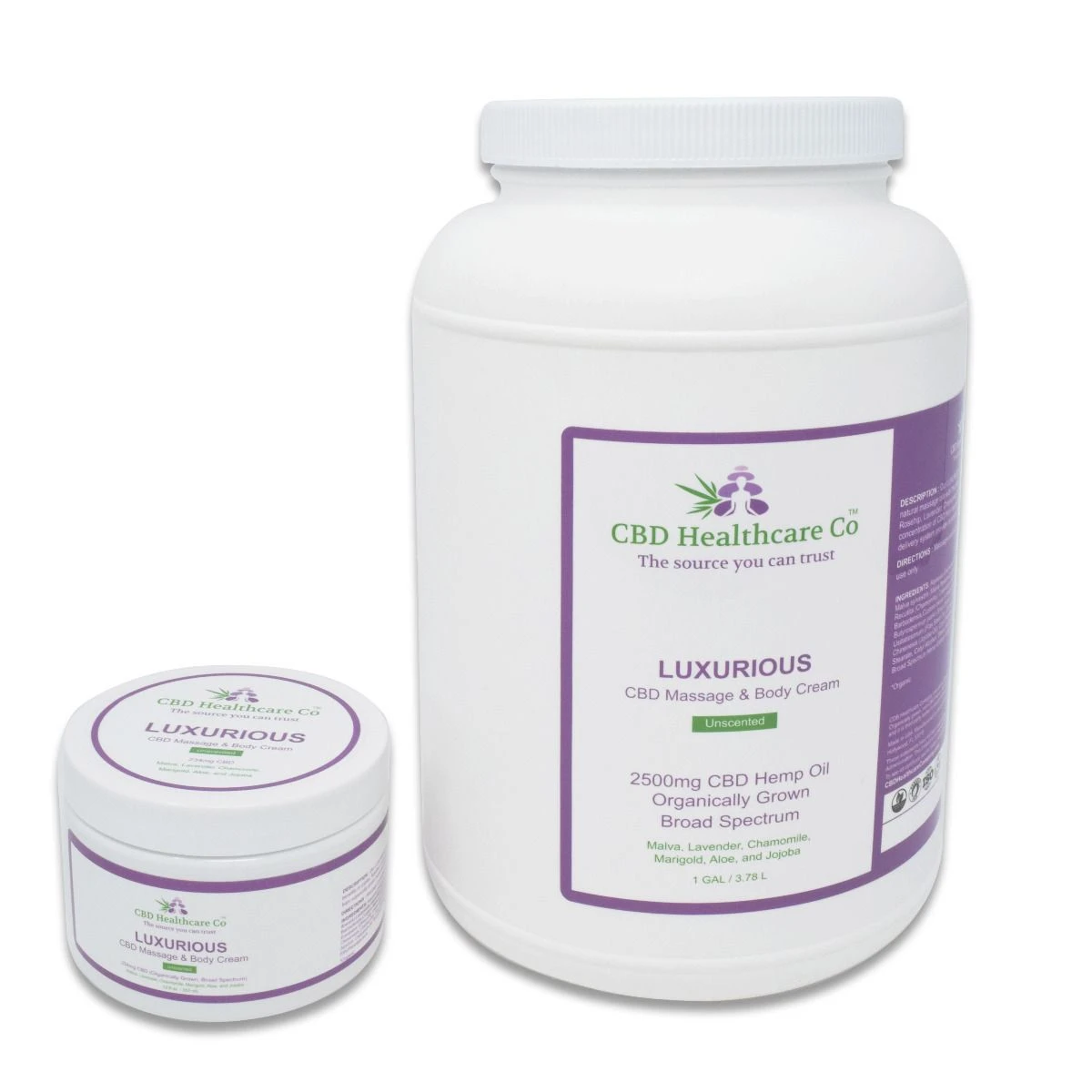 CBD Healthcare Company has taken the highest-quality broad-spectrum hemp extract and combined it with a variety of botanical extracts, many of which are organic. Our LUXURIOUS Massage & Body Cream blends natural massage oils with the aromatherapy benefits of Jojoba, Rosehip, Lavender, Chamomile, Bergamot, and Aloe. Our greater concentration of CBD from organically grown hemp and pure oils provide great skin penetration, enhancing the efficacy of this cream.