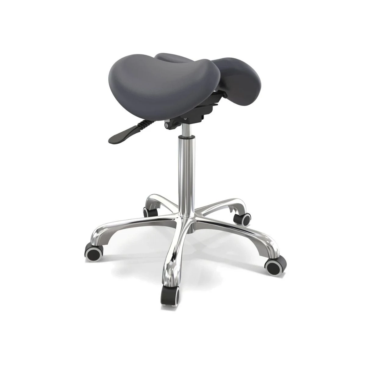 Ergonomic Saddle Chair in Split Style is characterized with its unique and fashionable shape. The humanistic slope is designed according to body mechanics and it is prefect for long period siting. Suitable for Office, Massage Therapist, Dentists, Doctors, and Tattoo Artists. Once Clients sit on it, they will feel more balanced and comfortable, compared to other saddle stools. One Tilting Control option on the side to easily adjust seat height for your comfort. Correcting seating position helps to relieve back and leg pain caused by long periods of sitting.