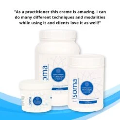 Soma Multi-Purpose Creme is a high quality massage creme with a light silky glide. It combines the best qualities of oils and lotions. You will find this multi-purpose creme to be perfect for both light and deep tissue techniques. Its Jojoba oil absorbs into the skin, leaving skin feeling soft without a sticky residue; and it easily washes out of sheets.